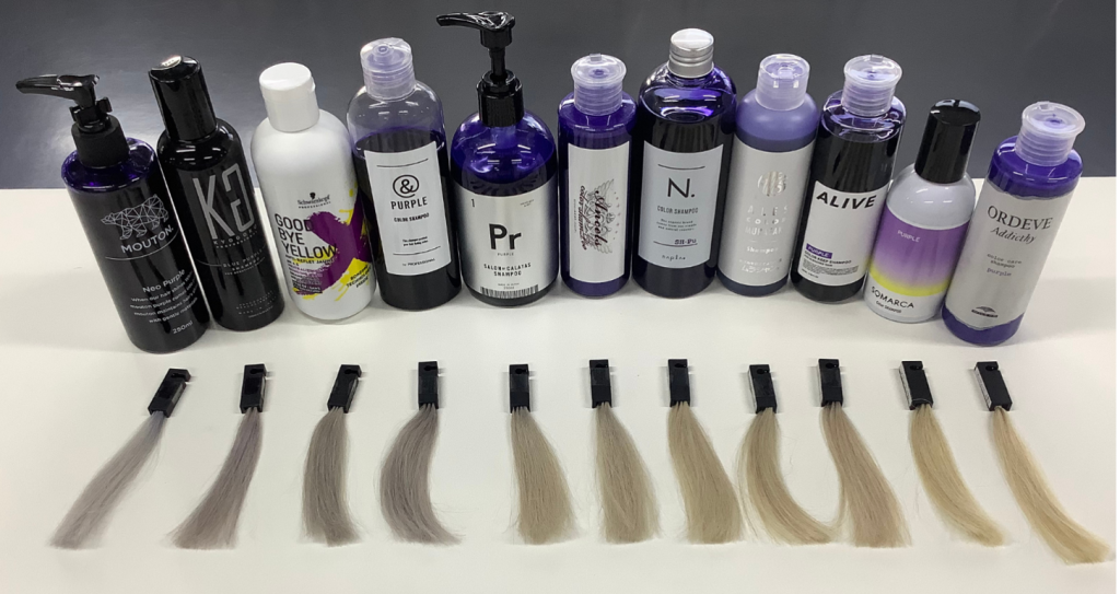 ハイブリーチの毛束を使用して、どれぐらい紫シャンプーで黄ばみが消せるか検証してみました。