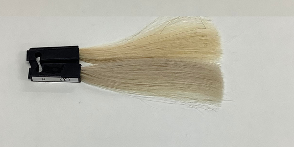 色は濃い目のグレーで使いやすい、泡立ちが水っぽいので使用量が多くなる。 ほとんどのブリーチの方にお勧め、青味も強く出るので白っぽい髪にしたい方は適さない。ペールイエロー(18レベル)のブリーチ毛だと青くなってしまう。染料は濃い。