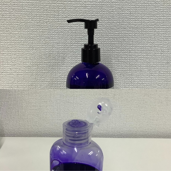 紫シャンプーはお風呂場についてしまうことを回避するため、出しやすい容器が好まれます。片手で開けられてボトルが押しやすいか、シャンプーの液だれ漏れはあるかをチェックしてます。